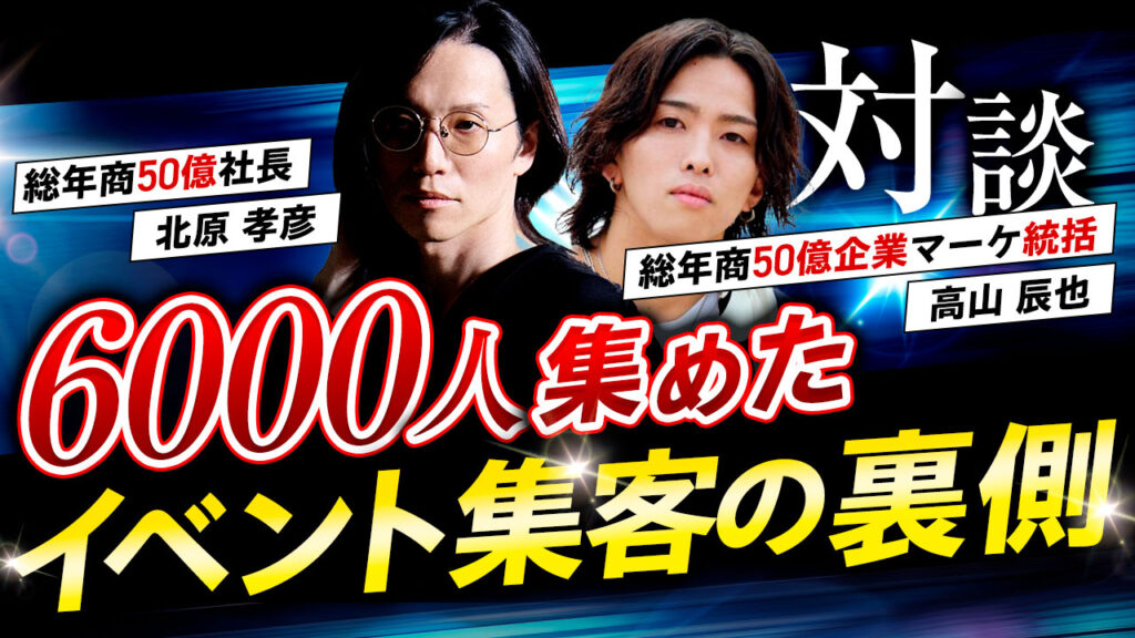 イベント集客で成功するための3つの考え方をベースに、実際に6000人のイベント集客を成功させた具体的な手法と考え方を対談形式でご覧いただけます。
